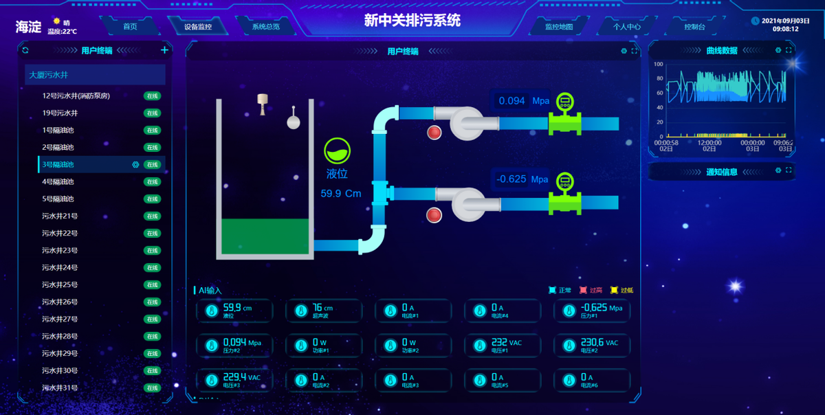 7、集中监控:云平台支持接入多套监控系统的数据,集中监控所有设备的运行实况,统一汇总,远程管理各地泵站的开关运行;