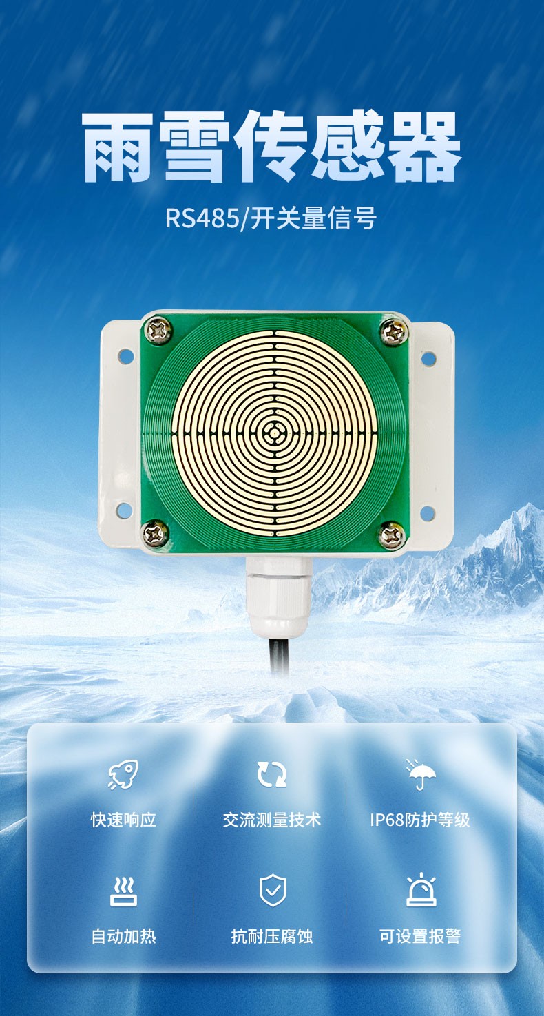大气中的水汽凝结之后会产生降水,降水是指大气中的水汽以液态水或固态水降落到地面的现象。雨或雪都是自然降水的现象之一,是由大气循环活动产生的现象,是地球水循环中不可缺少的一部分,同时也是给予远离江河湖泊的生物或人类补充淡水的唯一方法。地表径流的本源其实就是降水,降水也是补给地下水的主要来源。降水在空间分布上的不均匀与时间变化上的不稳定性会引起洪、涝、旱灾等自然灾害。所以需要用雨雪传感器进行雨雪监测,预防因气象而导致的损失。