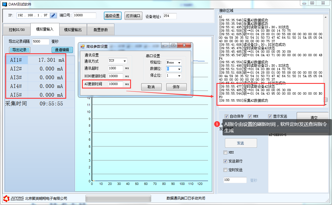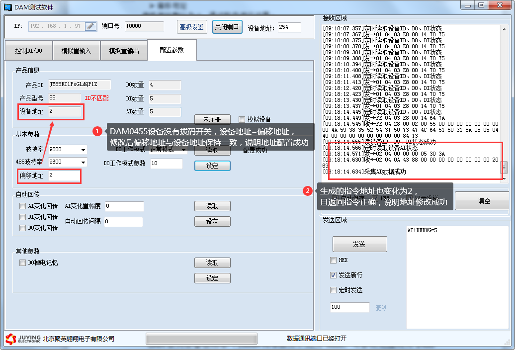 详细使用说明参考:JYDAM调试软件使用说明文档