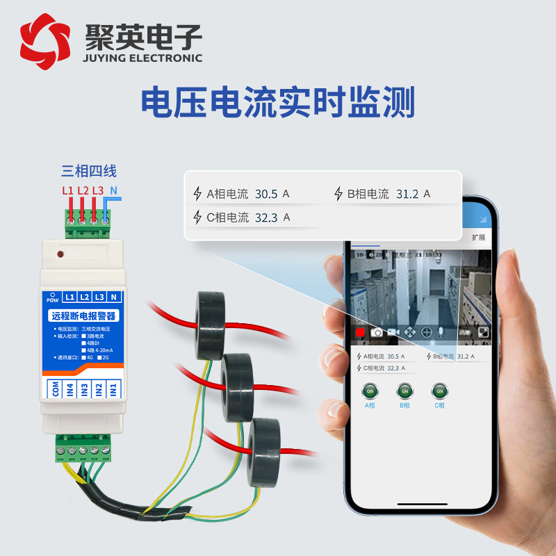 用户可通过手机小程序远程实时查看监测到的电流数值,同 时支持接入海康威视的网络摄像头实现数据与视频画面同 屏显示。