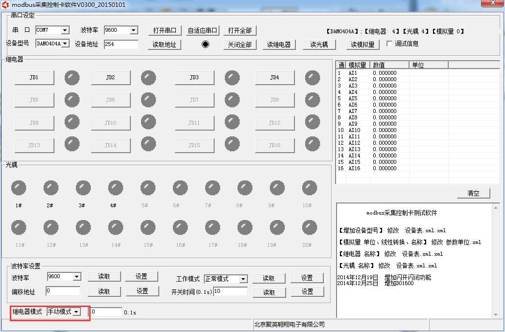 手动模式:对继电器每操作一次,继电器则翻转一次(闭合时断开,断开时闭合);