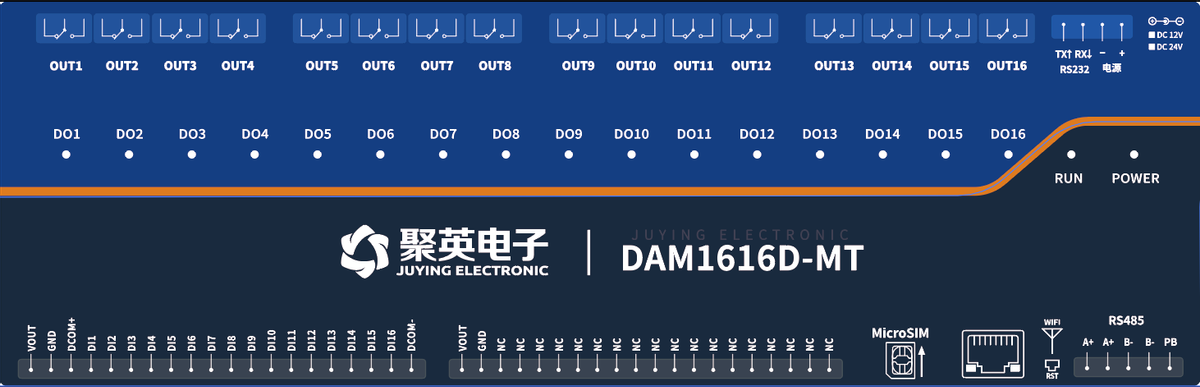 1616D-MT 工业级网络控制???,16路继电器输出(DO)16路开关量采集(DI),16路继电器控制输出,触点隔离;16路开关量输入;支持单网口、单WIFI网口+WIFI三种分类;支持TCP/UDP工作方式,支持MQTT协议提供安卓手机APP控制软件电脑端...