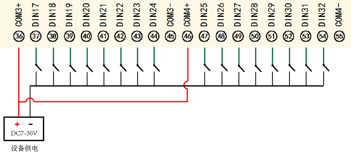 • 32路光耦隔离输入,可以接无源触点和DC5-24V电压