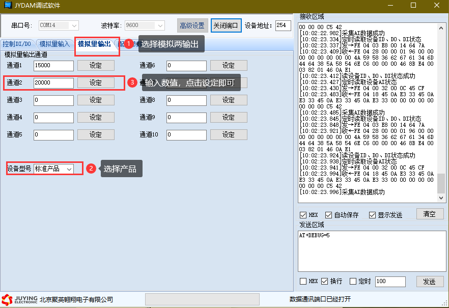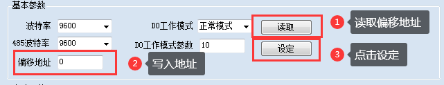 点击JYDAM调试软件下方偏移地址后边的“读取”或“设置”来对设备的偏移地址进行读取或设置。