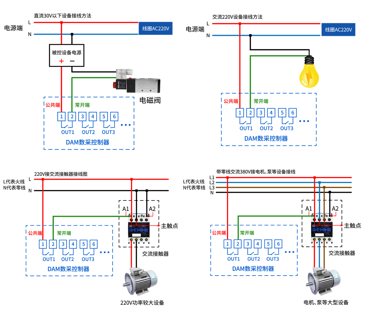 • 开关量联动----手动开关或开关量触发设备与控制输出联动;
