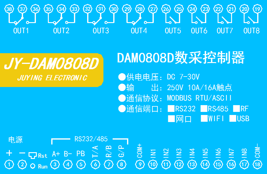 DAM0808D-RS232/485 | ● | ● | ● | 8 | 8 |