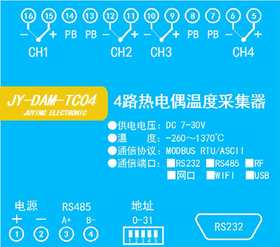 • 4路K型热电偶采集通道;