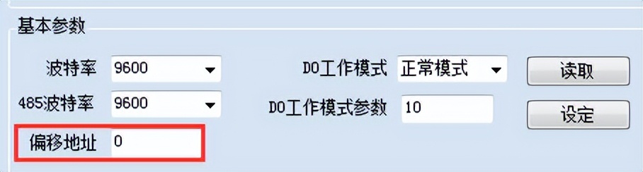 ②、设备通过IP地址来区分设备,设备地址默认为254,若需修改设备地址,使用【JYDAM调试软件】在配置参数里面修改偏移地址即可,如下图所示: