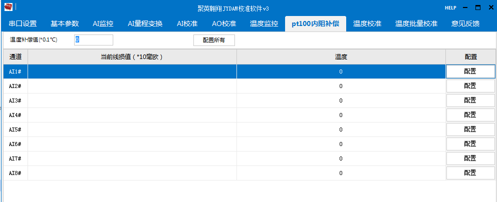 打开温度补偿软件,选择对应的通讯连接参数,打开端口或串口,与设备正常通讯上以后,在补偿界面进行温度差值补偿即可,如下图所示: