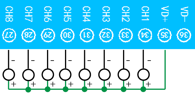 下图中的电源部分为传感器供电,AD1-AD14接传感器信号正,6脚GND为传感器信号负。