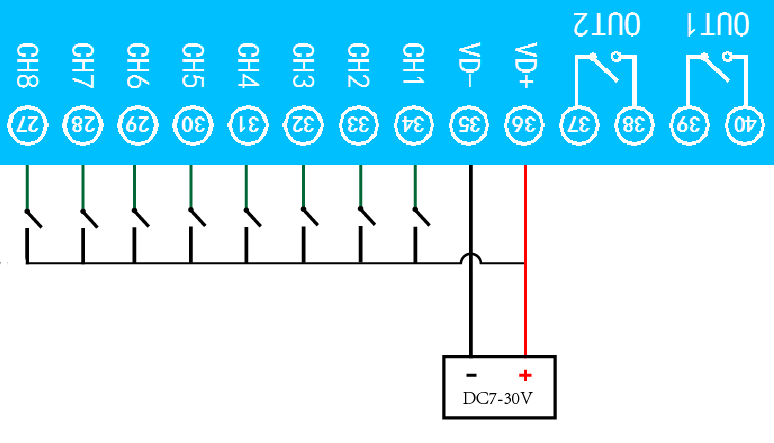 闪开模式:对继电器每操作一次,继电器则闭合1秒(实际时间【单位秒】=设置数字*0.1)后自行断开;